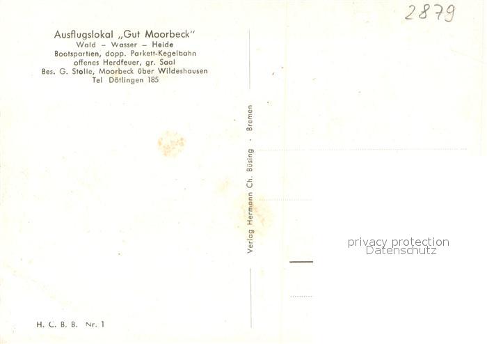 73705669 Moorbeck Ausflugslokal Gut Moorbeck Wald-Wasser-Heide postalisch nicht gelaufen Erhaltung siehe scans [LiesaD40] KatCode: 11110003458014