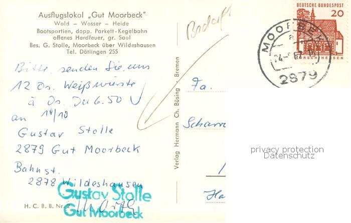 73768546 alte Postkarte Moorbeck Ausflugslokal Gut Morbeck am Wasser postalisch gelaufen Erhaltung siehe scans [LiesaD40] KatCode: 11110003458014