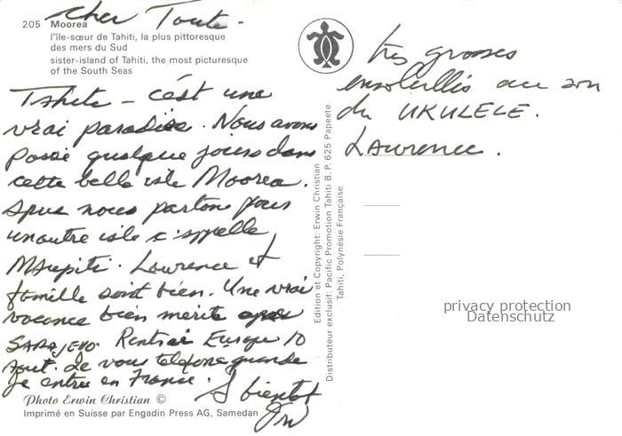 74013520 Moorea Tahiti Polynesien Ile-soeur de Tahiti vue aérienne Ansicht vom Meer aus postalisch nicht gelaufen Erhaltung siehe scans [FriedD77] KatCode: 19020