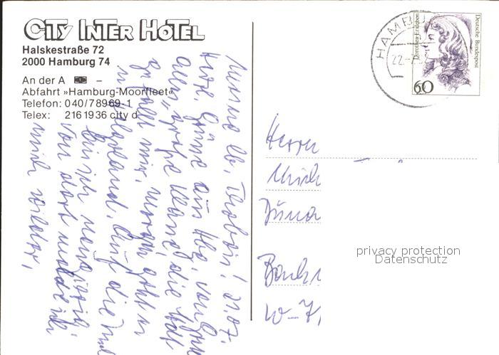 72179073 alte Postkarte Moorfleet City Inter Hotel postalisch gelaufen Erhaltung siehe scans KatCode: 11110002000000
