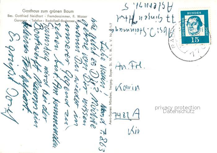 73852825 Moos Bodensee Fliegeraufnahme Gasthaus zum gruenen Baum postalisch gelaufen Erhaltung siehe scans [WerneD78] alte Postkarte Wern Katcode 11110008335055