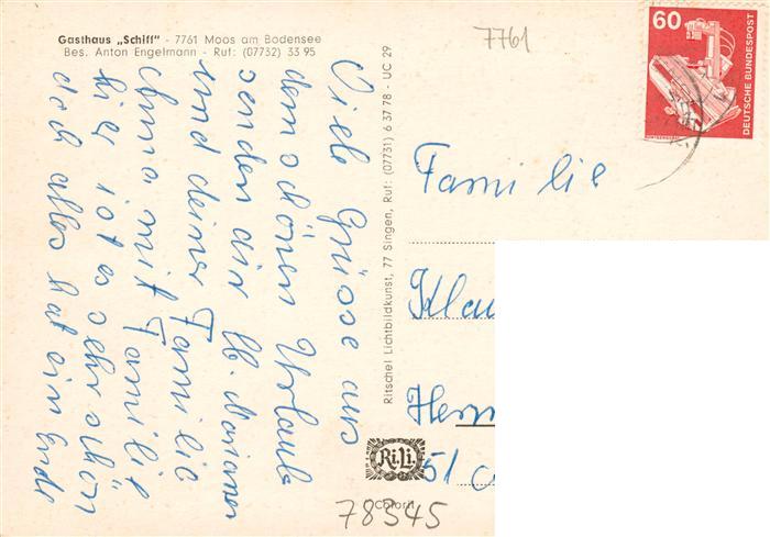73886917 Moos Bodensee Gasthaus zum Schiff postalisch gelaufen Erhaltung siehe scans [WerneD78] alte Postkarte Wern Katcode 11110008335055