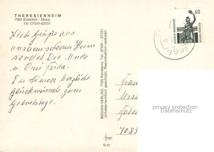 73687652 alte Postkarte Moos Eriskirch Theresienheim postalisch gelaufen Erhaltung siehe scans [FriedD77] KatCode: 11110008435013