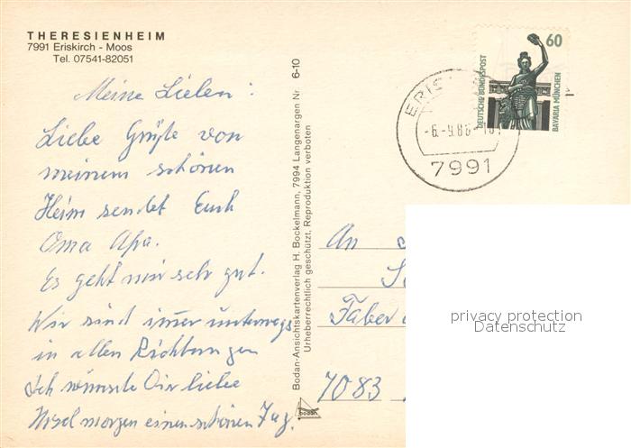 73687746 alte Postkarte Moos Eriskirch Theresienheim postalisch gelaufen Erhaltung siehe scans [WerneD78] KatCode: 11110008435013