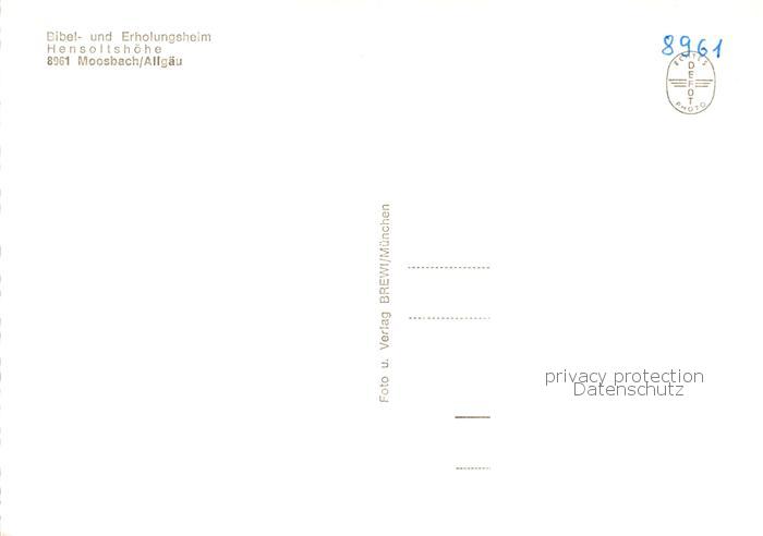 73829032 Moosbach Memmingen Bibel und Erholungsheim Hensoltshoehe postalisch nicht gelaufen Erhaltung siehe scans [WerneD78] KatCode: 11110009778162
