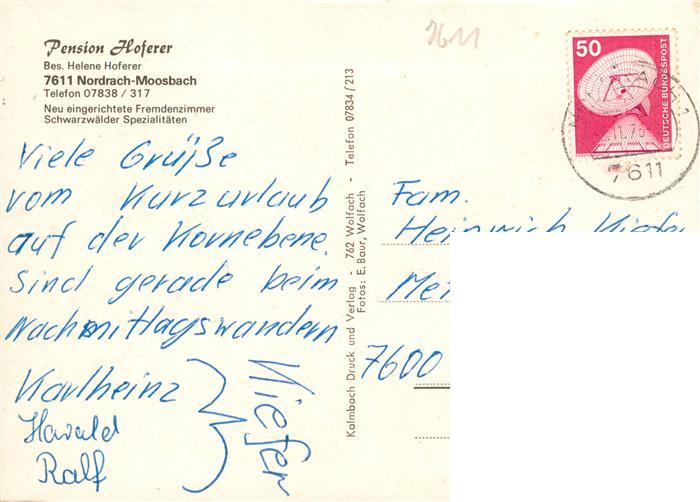 73928391 Moosbach Nordrach Pension Hoferer Terrasse postalisch gelaufen Erhaltung siehe scans [FriedD77] alte Postkarte Frie Katcode 11110008317085