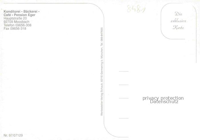 74049972 Moosbach Oberpfalz Konditorei Café Eger Gastraum Terrasse Fremdenzimmer postalisch nicht gelaufen Erhaltung siehe scans [FriedD77] KatCode: 11110009374137