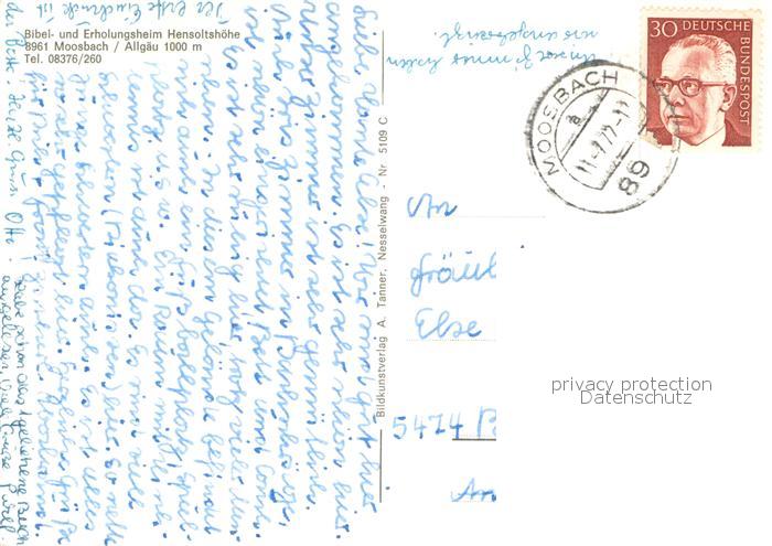 73671823 alte Postkarte Moosbach Sulzberg Bibel und Erholungsheim Hensoltshoehe Wegekreuz postalisch gelaufen Erhaltung siehe scans [WerneD78] KatCode: 11110009780140