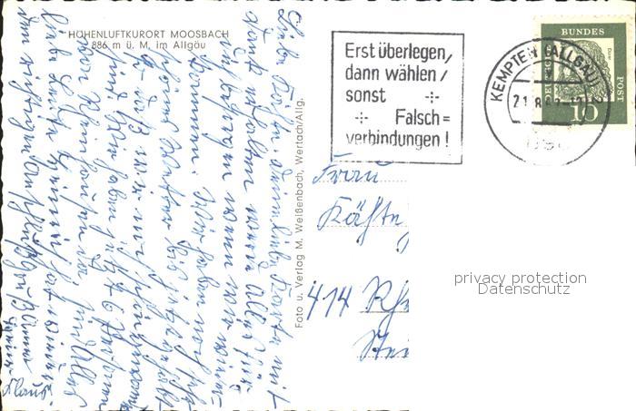 72177341 alte Postkarte Moosbach Sulzberg Blauer Enzian Gruenten Kirche postalisch gelaufen Erhaltung siehe scans KatCode: 11110009780140