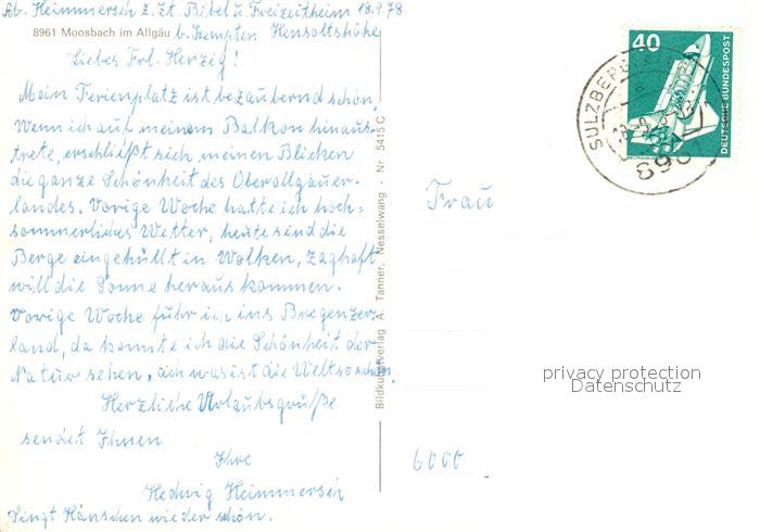 73177911 alte Postkarte Moosbach Sulzberg Gesamtansicht mit Alpenpanorama postalisch gelaufen Erhaltung siehe scans [FriedD77] KatCode: 11110009780140