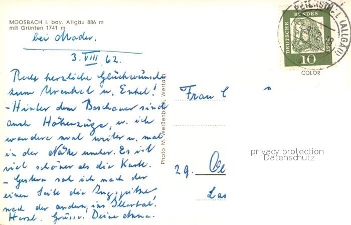 73065437 alte Postkarte Moosbach Sulzberg mit Gruenten postalisch gelaufen Erhaltung siehe scans [WerneD78] KatCode: 11110009780140