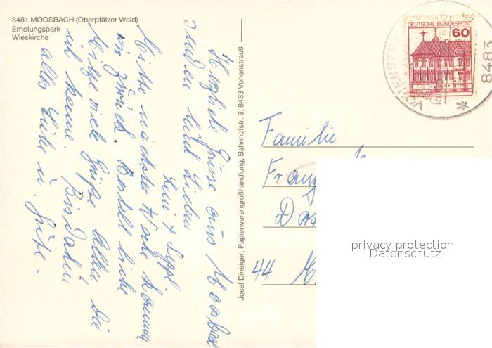 73736786 alte Postkarte Moosbach Vohenstrauss Panorama Wieskirche Erholungspark Kinderspielplatz postalisch gelaufen Erhaltung siehe scans [FriedD77] KatCode: 11110009374137