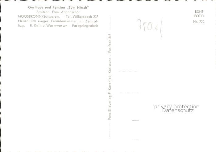 31715244 Moosbronn Gasthaus Pension zum Hirsch postalisch nicht gelaufen Erhaltung siehe scans KatCode: 11110008216015