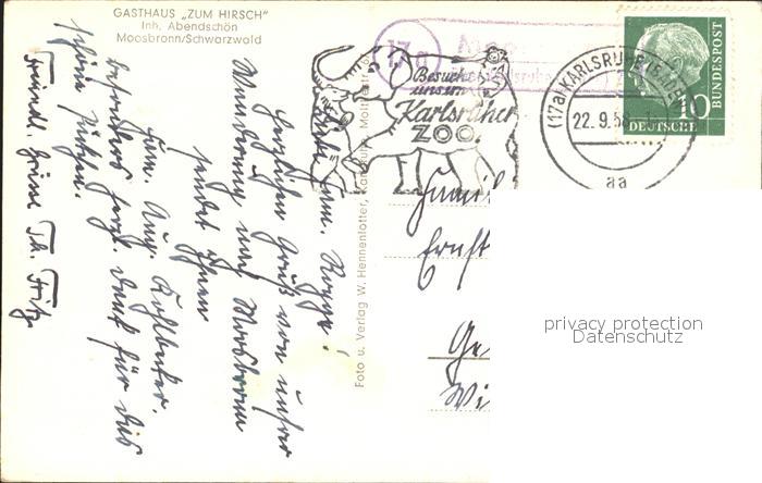 72175637 alte Postkarte Moosbronn Gasthaus Zu Hirsch postalisch gelaufen Erhaltung siehe scans KatCode: 11110008216015