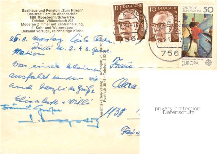 73090306 alte Postkarte Moosbronn Gasthaus Zum Hirsch Bernstein Mahlbergturm postalisch gelaufen Erhaltung siehe scans [NatalD47] KatCode: 11110008216015