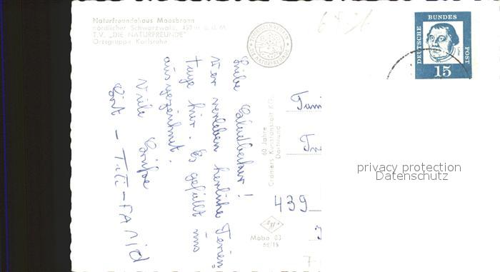 72032226 alte Postkarte Moosbronn Naturfreundehaus Moosbronn postalisch gelaufen Erhaltung siehe scans KatCode: 11110008216015