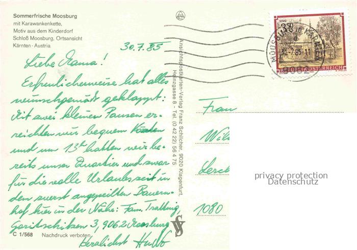 74097563 alte Postkarte Moosburg Kaernten AT Panorama Motiv im Kinderdorf Schloss Moosburg Ortsansicht postalisch gelaufen Erhaltung siehe scans [WerneD78] KatCode: 11390211020421