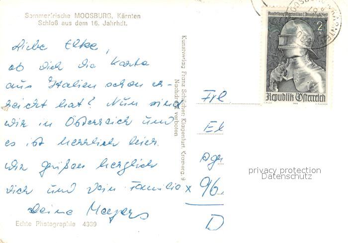 13631148 alte Postkarte Moosburg Kaernten Schloss 16. Jhdt. Sommerfrische Fliegeraufnahme postalisch gelaufen Erhaltung siehe scans [FriedD77] KatCode: 11390211020421