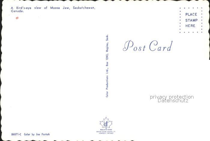 Moose Jaw Fliegeraufnahme Saskatchewan postalisch nicht gelaufen