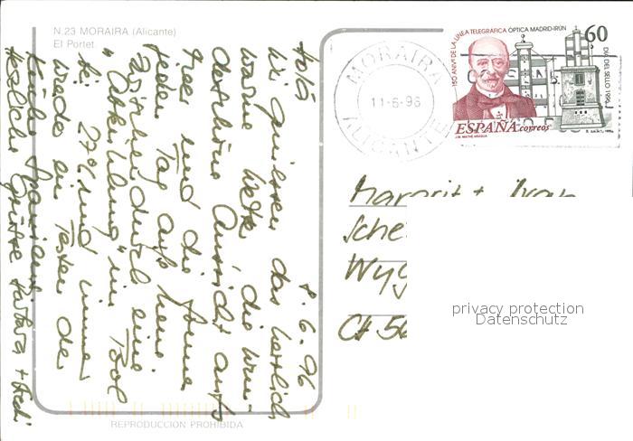 old postcard Moraira El Portet Strand postalisch gelaufen Erhaltung siehe scans [FriedD77]