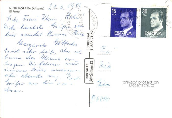 old postcard Moraira El Portet postalisch gelaufen Erhaltung siehe scans
