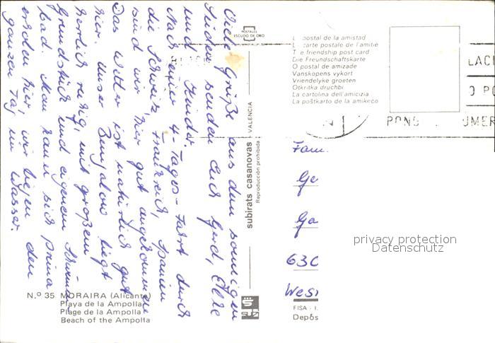 old postcard Moraira Playa Ampolla postalisch gelaufen Erhaltung siehe scans