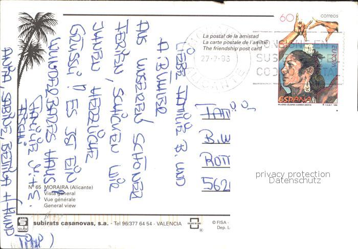 old postcard Moraira Sonnenuntergang an der Kueste postalisch gelaufen Erhaltung siehe scans [FriedD77]