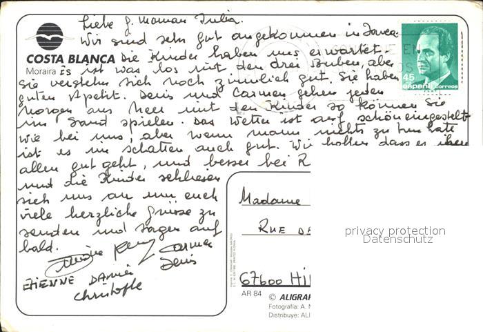 old postcard Moraira Stadtblick postalisch gelaufen Erhaltung siehe scans