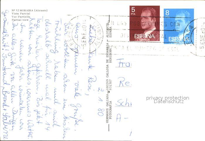 old postcard Moraira Vista parcial postalisch gelaufen Erhaltung siehe scans [WerneD78]