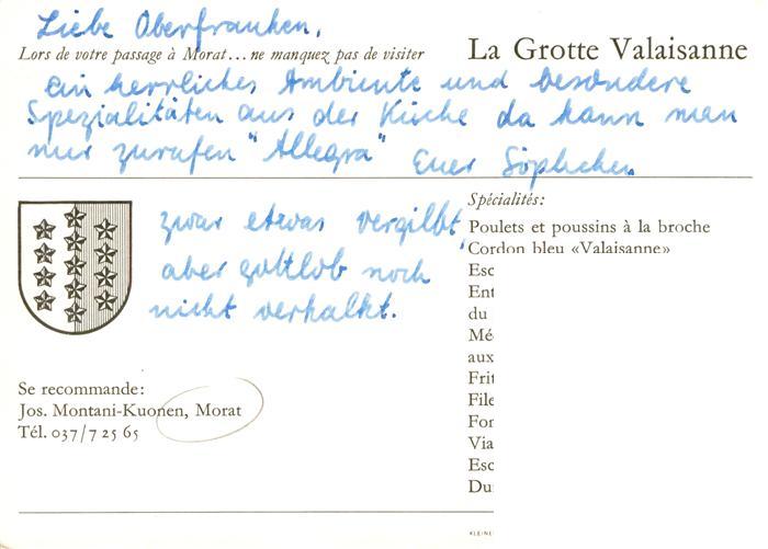 13915346 Morat Murten FR La Grotte Valaisanne postalisch nicht gelaufen Erhaltung siehe scans [WerneD78] KatCode: 11470070280686