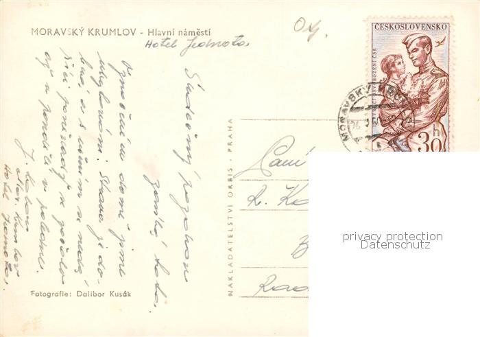 73849131 Moravsky Krumlov Maehrisch Kromau CZ Hlavni namesti postalisch gelaufen Erhaltung siehe scans [WerneD78] old postcard Wern Katcode 11520
