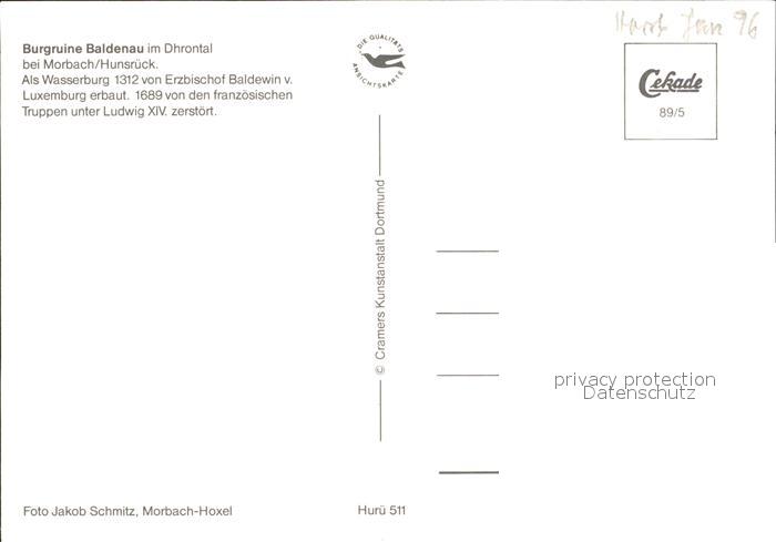 72145474 Morbach Hunsrueck Burgruine Baldenau postalisch nicht gelaufen Erhaltung siehe scans KatCode: 11110007231502