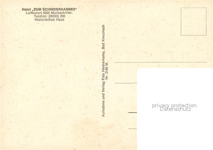 73569181 Morbach Hunsrueck Hotel Zum Schinderhannes Historisches Haus postalisch nicht gelaufen Erhaltung siehe scans [FriedD77] KatCode: 11110007231502