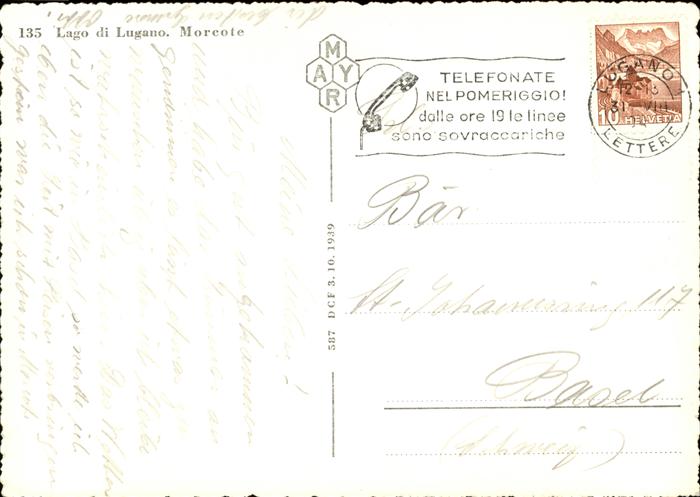 11372406 alte Postkarte Morcote TI Teilansicht vom See postalisch gelaufen KatCode: 11470210660186