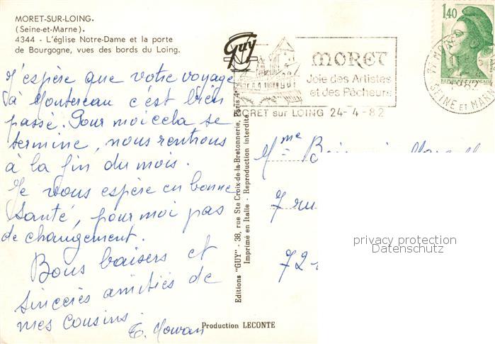 13846684 Moret-sur-Loing Eglise Notre Dame et la porte de Bourgogne vues des bords du Loing postalisch gelaufen Erhaltung siehe scans [FriedD77] carte postale Frie Katcode 11170077477316