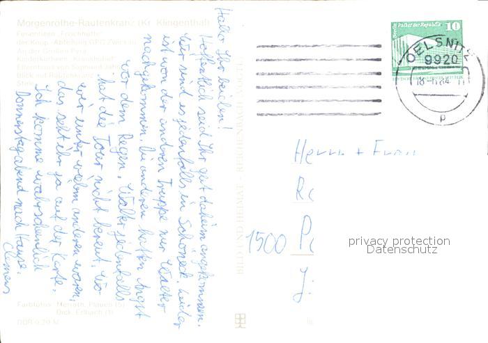 72375089 alte Postkarte Morgenroethe-Rautenkranz Ferienheim Frischhuette An der Gr Pyra Kinderheim Kraushubel Sigmund Jahn Haus Teilansicht Stele postalisch gelaufen Erhaltung siehe scans KatCode: 11110014178360