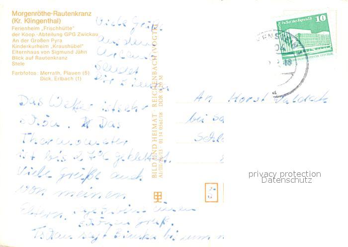 73065859 alte Postkarte Morgenroethe-Rautenkranz Ferienheim Frischhuette Kinderkurheim Stele postalisch gelaufen Erhaltung siehe scans [KathaD81] KatCode: 11110014178360