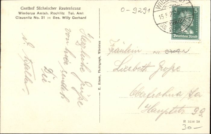 30727844 alte Postkarte Morgenroethe-Rautenkranz Gasthof Saechsischer Rautenkranz postalisch gelaufen KatCode: 11110014178360