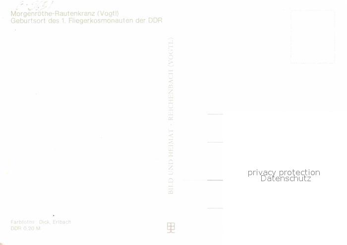72726460 Morgenroethe-Rautenkranz Geburtsort des 1. Fliegerkosmonauten der DDR Oberst Sigmund Jaehn Denkmal postalisch nicht gelaufen Erhaltung siehe scans [FriedD77] KatCode: 11110014178360