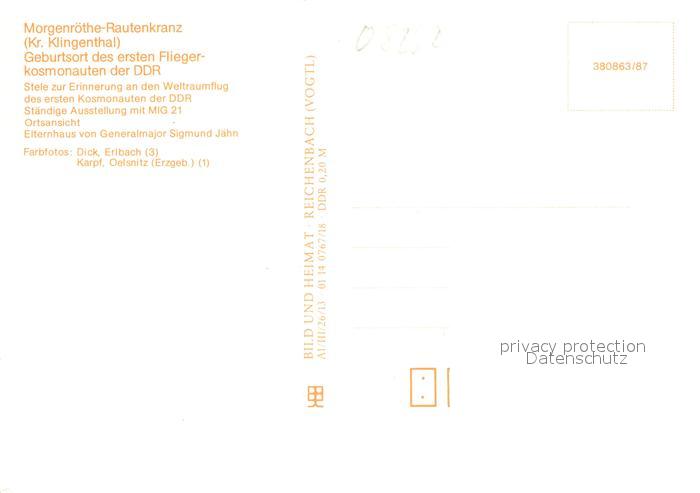 72985154 Morgenroethe-Rautenkranz Geburtsort Kosmonaut Siegmund Jaehn postalisch nicht gelaufen Erhaltung siehe scans [LiesaD40] KatCode: 11110014178360