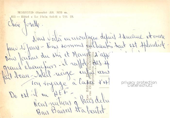 13602736 Moriond Courchevel Hotel Le Plain Soleil postalisch nicht gelaufen Erhaltung siehe scans [LiesaD40] Lies Katcode 11170073173227