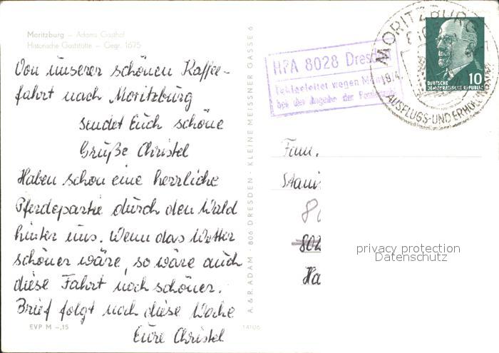 71934316 alte Postkarte Moritzburg Sachsen Adams Gasthof postalisch gelaufen Erhaltung siehe scans KatCode: 11110014280260