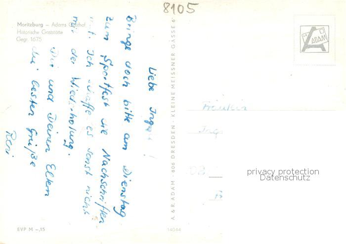 73758984 Moritzburg Sachsen Adams Gasthof postalisch nicht gelaufen Erhaltung siehe scans [WerneD78] KatCode: 11110014280260
