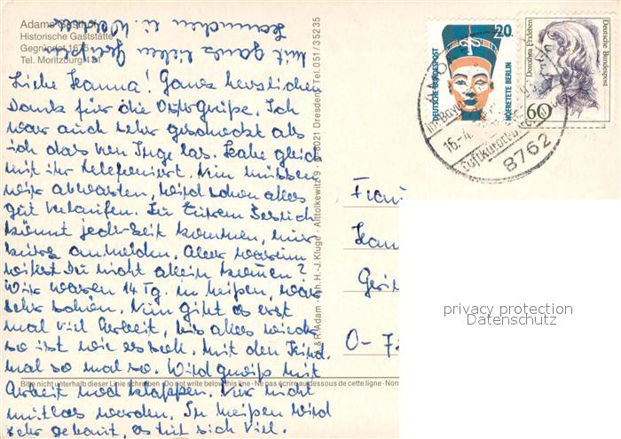 73666643 alte Postkarte Moritzburg Sachsen Adams Gasthof postalisch gelaufen Erhaltung siehe scans [WerneD78] KatCode: 11110014280260
