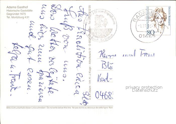 72354653 alte Postkarte Moritzburg Sachsen Adams Gasthof Hist Gaststaette postalisch gelaufen Erhaltung siehe scans KatCode: 11110014280260
