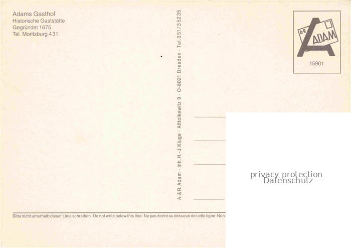 74023239 Moritzburg Sachsen Adams Gasthof Historische Gaststaette postalisch nicht gelaufen Erhaltung siehe scans [FriedD77] KatCode: 11110014280260