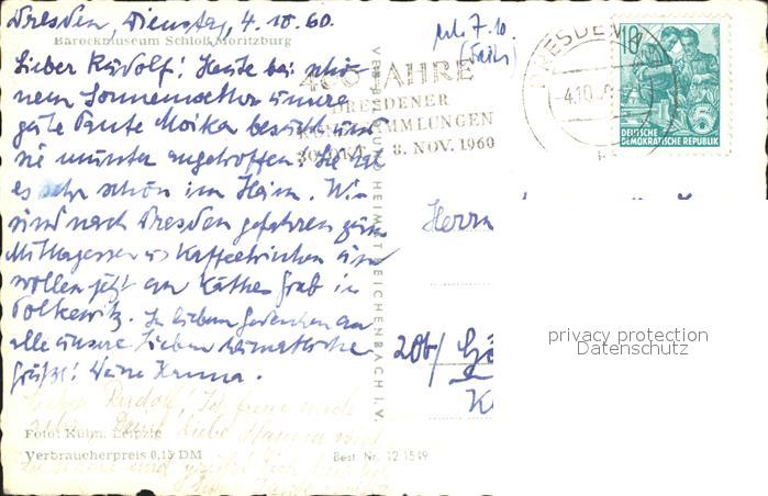 72090592 alte Postkarte Moritzburg Sachsen Barockmuseum Schloss postalisch gelaufen KatCode: 11110014280260