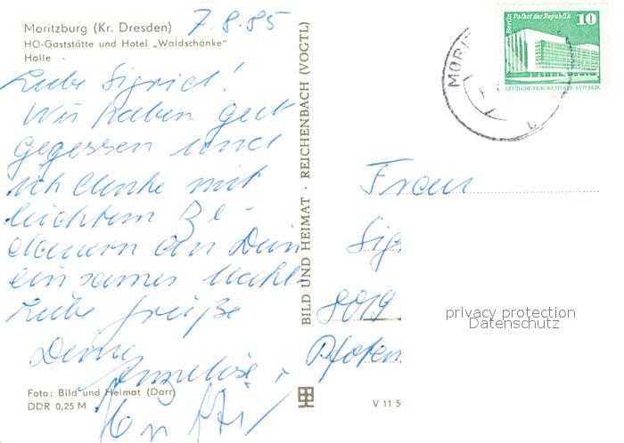73095921 alte Postkarte Moritzburg Sachsen HO Gaststaette Hotel Waldschaenke Halle postalisch gelaufen Erhaltung siehe scans [KathaD81] KatCode: 11110014280260