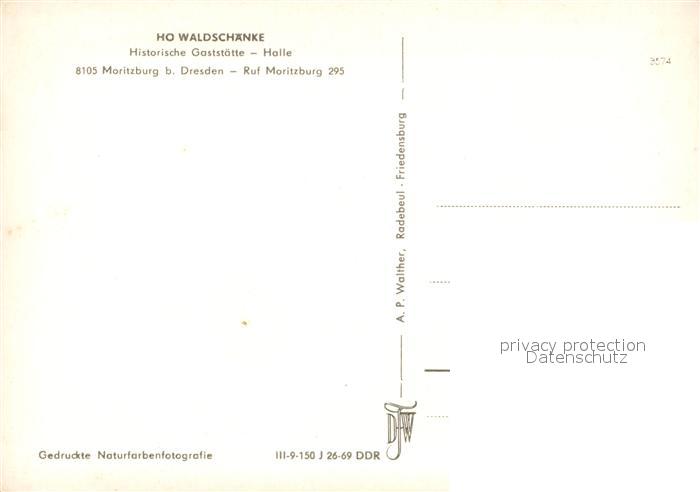 73722497 Moritzburg Sachsen HO-Waldschaenke Halle postalisch nicht gelaufen Erhaltung siehe scans [LiesaD40] KatCode: 11110014280260