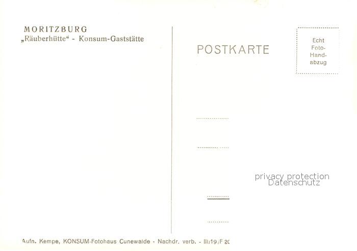 73544206 Moritzburg Sachsen Konsum Gaststaette Raeuberhuette Grill Handabzug postalisch nicht gelaufen Erhaltung siehe scans [FriedD77] KatCode: 11110014280260